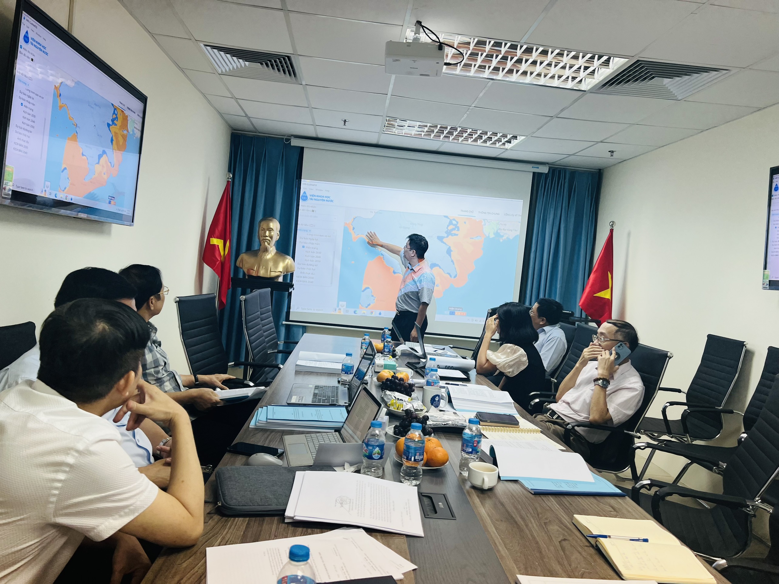 Ngày 03/6/2024 tại Viện Khoa học tài nguyên nước đã tổ chức phiên họp Tổ chuyên gia tư vấn, đánh giá nghiệm thu kết quả thực hiện nhiệm vụ cấp quốc gia “Nghiên cứu, đánh giá tác động tổ hợp của các hoạt động kinh tế - xã hội và hệ thống hồ chứa trên dòng chính sông Mê Công đến vùng bờ biển đồng bằng sông Cửu Long”, mã số ĐTĐL.CN-56/21.