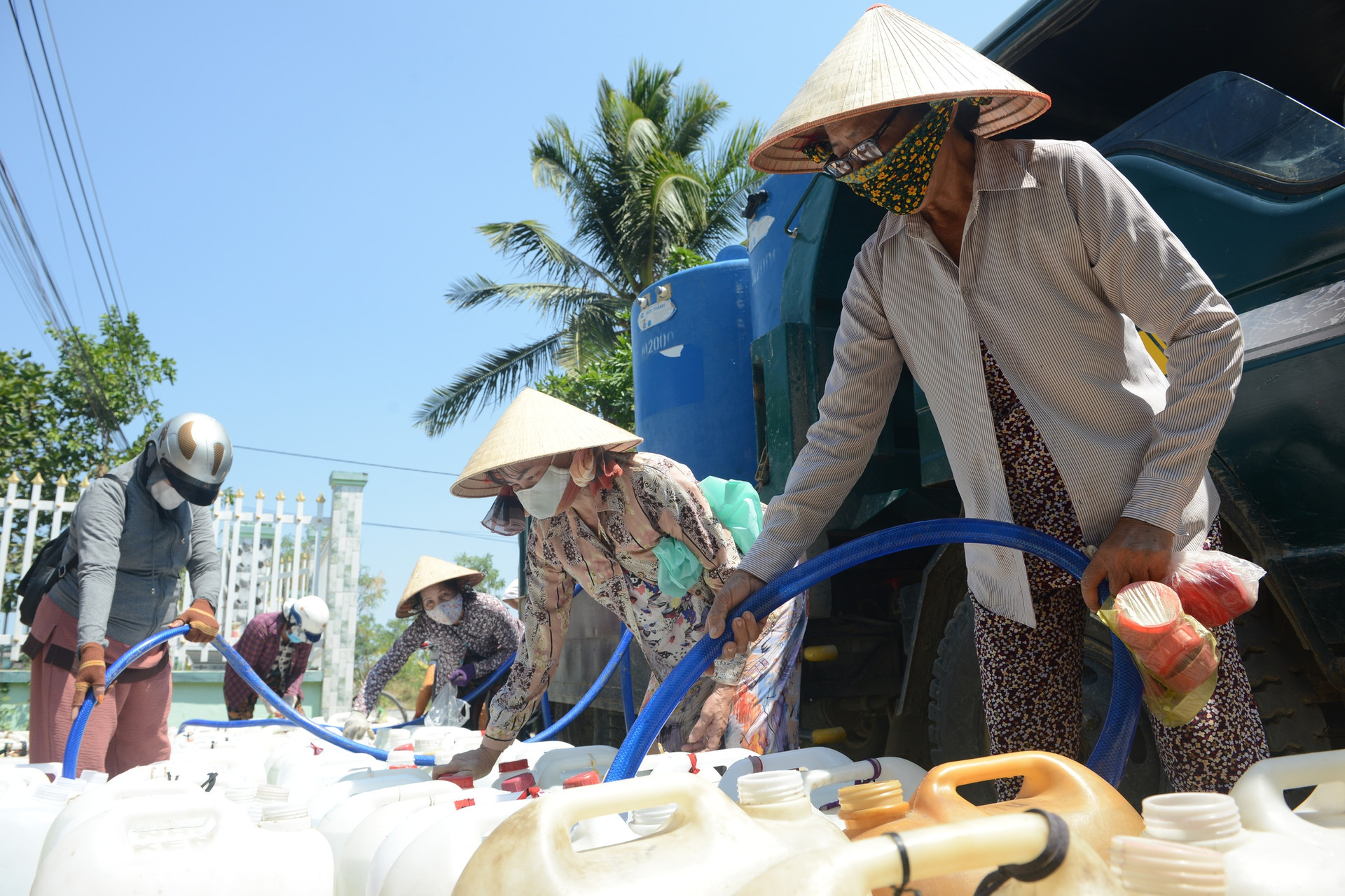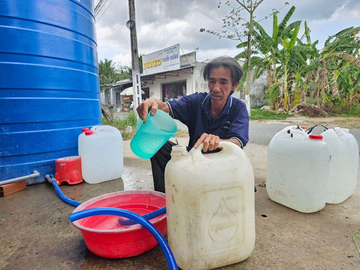 Người dân ở xã An Hóa, huyện Châu Thành, tỉnh Bến Tre chắt chiu từng giọt nước mùa hạn mặn - Ảnh: VGP/Vũ Phong