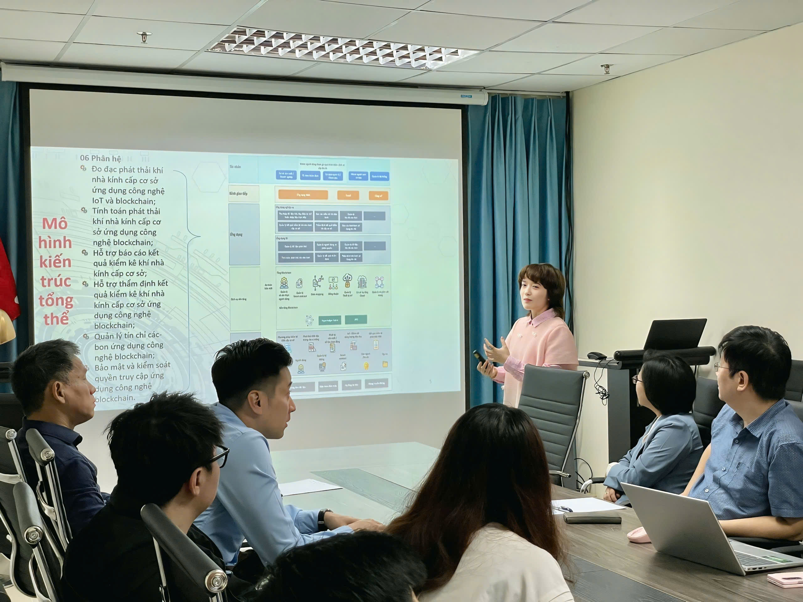 Th.S. Lê Thị Hường đã trình bày một số nghiên cứu về Blockchain - công nghệ lưu trữ và truyền tải thông tin dưới dạng các khối (block) được liên kết với nhau bằng mã hóa. Mỗi khối chứa một tập hợp các giao dịch và được gắn với khối trước đó, tạo thành một chuỗi (chain). Đặc điểm nổi bật của blockchain là phi tập trung, minh bạch, không thể thay đổi (immutable) và an toàn. Cơ sở công nghệ Blockchain hướng tới hệ thống đề xuất giải quyết các vấn đè bằng các giải pháp tiên tiến như: (1) Thu thập dữ liệu bằng công nghệ BIGDATA, (2) Thuật toán thông minh hỗ trợ ra quyết định dựa trên nhiều tiêu chí; và (3) Đồng thuận công khai và bảo vệ dữ liệu.