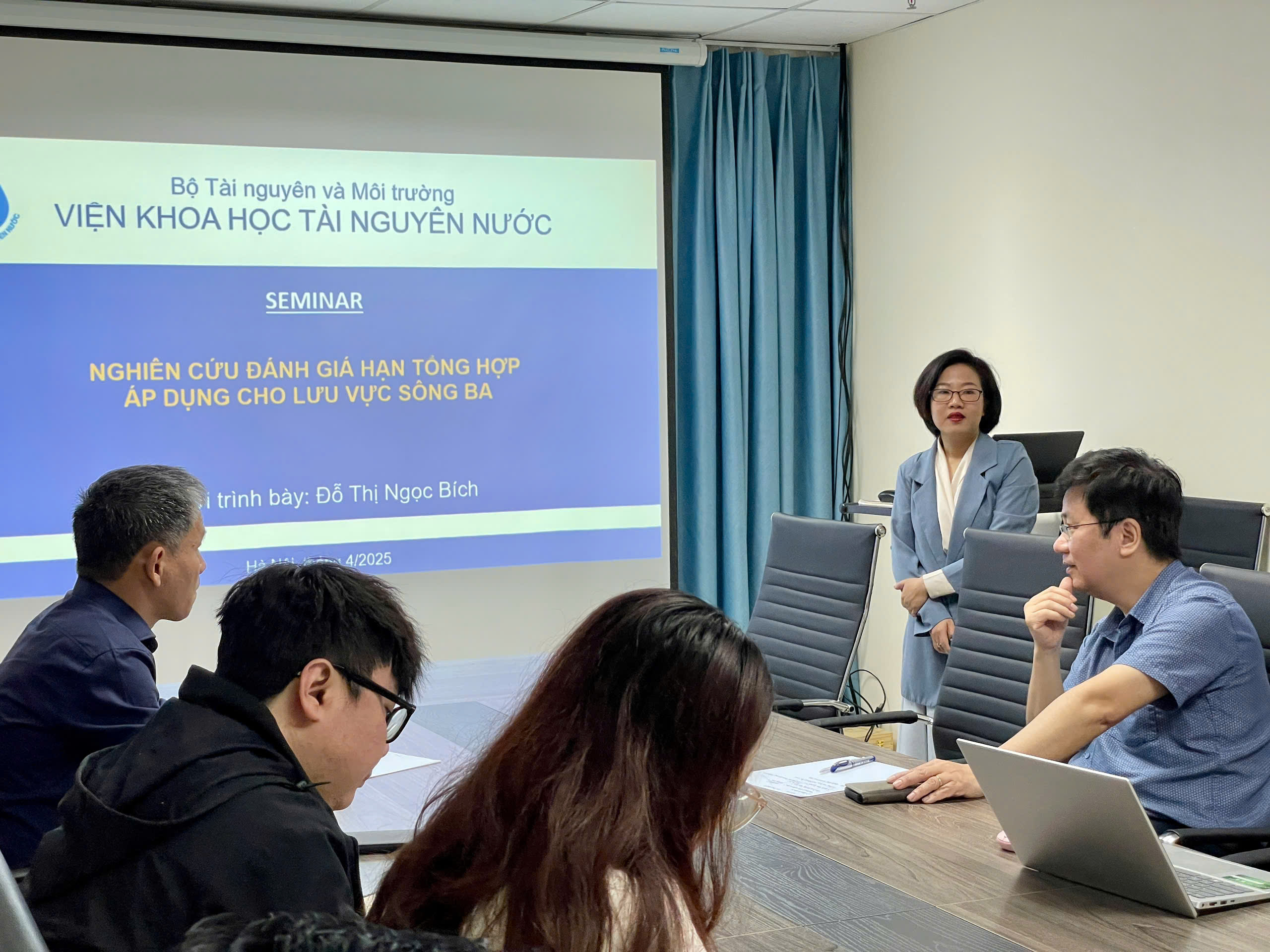 Phiên Hai được ThS. Đỗ Thị Ngọc Bích báo cáo Nghiên cứu đánh giá hạn tổng hợp áp dụng cho lưu vực Sông Ba - Thuộc đề tài Nghiên cứu đánh giá rủi ro hạn tổng hợp nhằm bảo đảm an ninh nguồn nước trên các lưu vực sông. Áp dụng thí điểm cho lưu vực Sông Ba (TNMT.2024.02.06).
